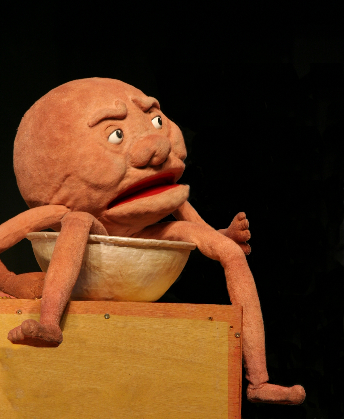 Albert sitting in hat ← Previous Next → “Albert the Magic Pudding, made by Sydney Puppet Theatre, commissioned by Marian Street Theatre for Young People for a new theatre version of The Magic Pudding, written by Andrew James, directed by Margie McCrae with music by Sarah de Jong. 2010”